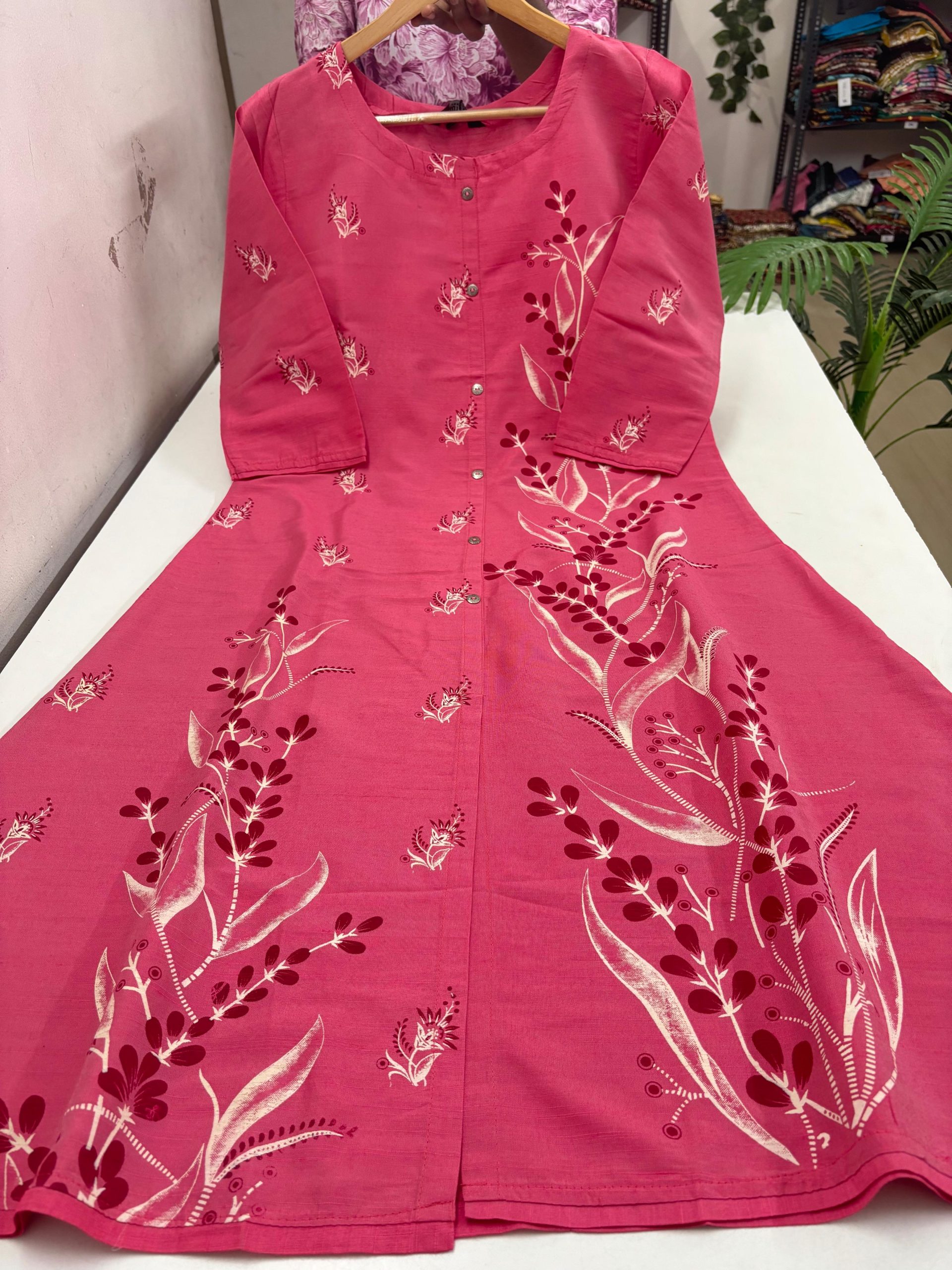Premium Semi Raw Silk A Line Kurti With Side Pocket