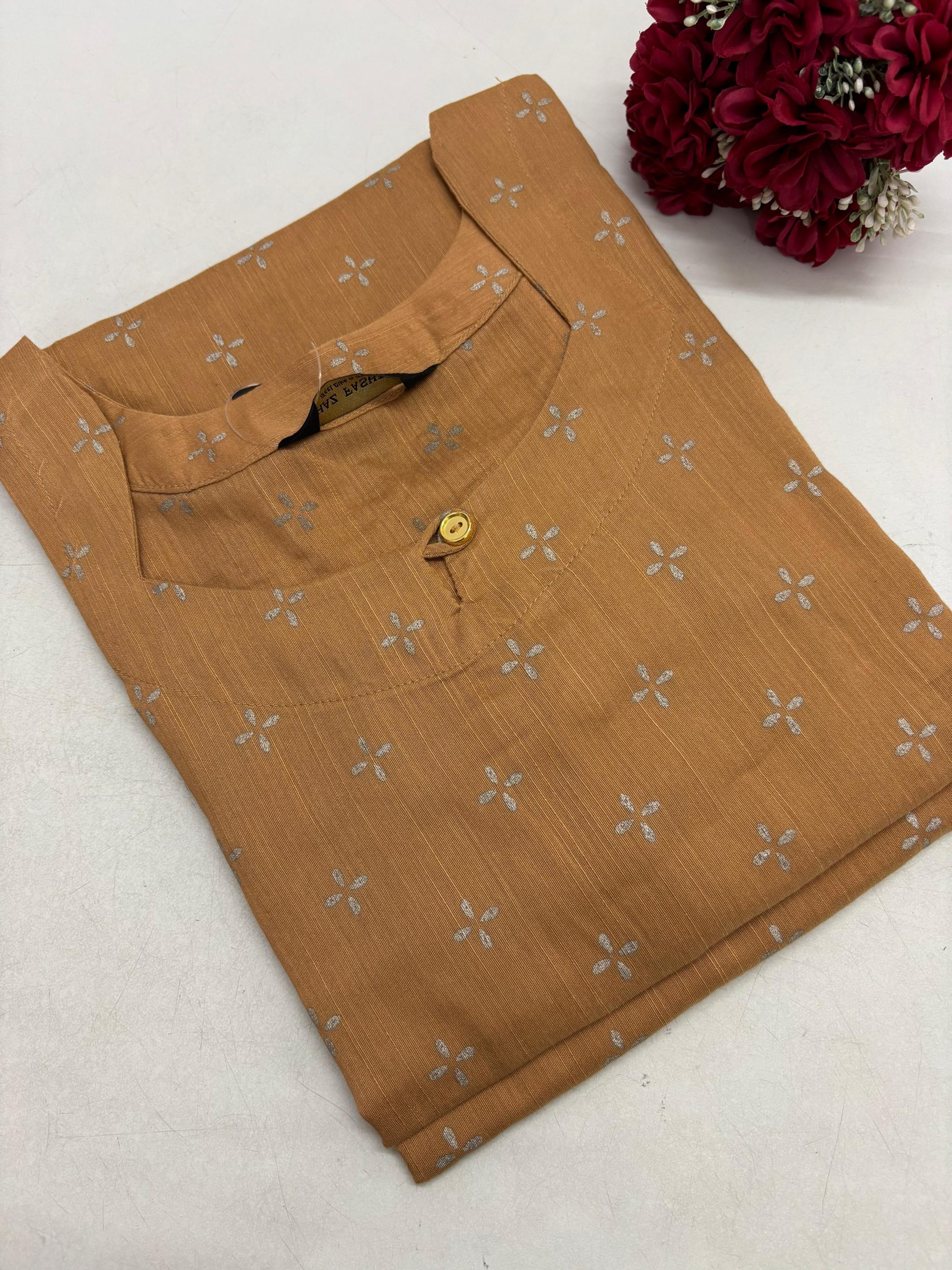 Semi Raw Silk Side Open Kurti With Pocket & beautiful neck design
