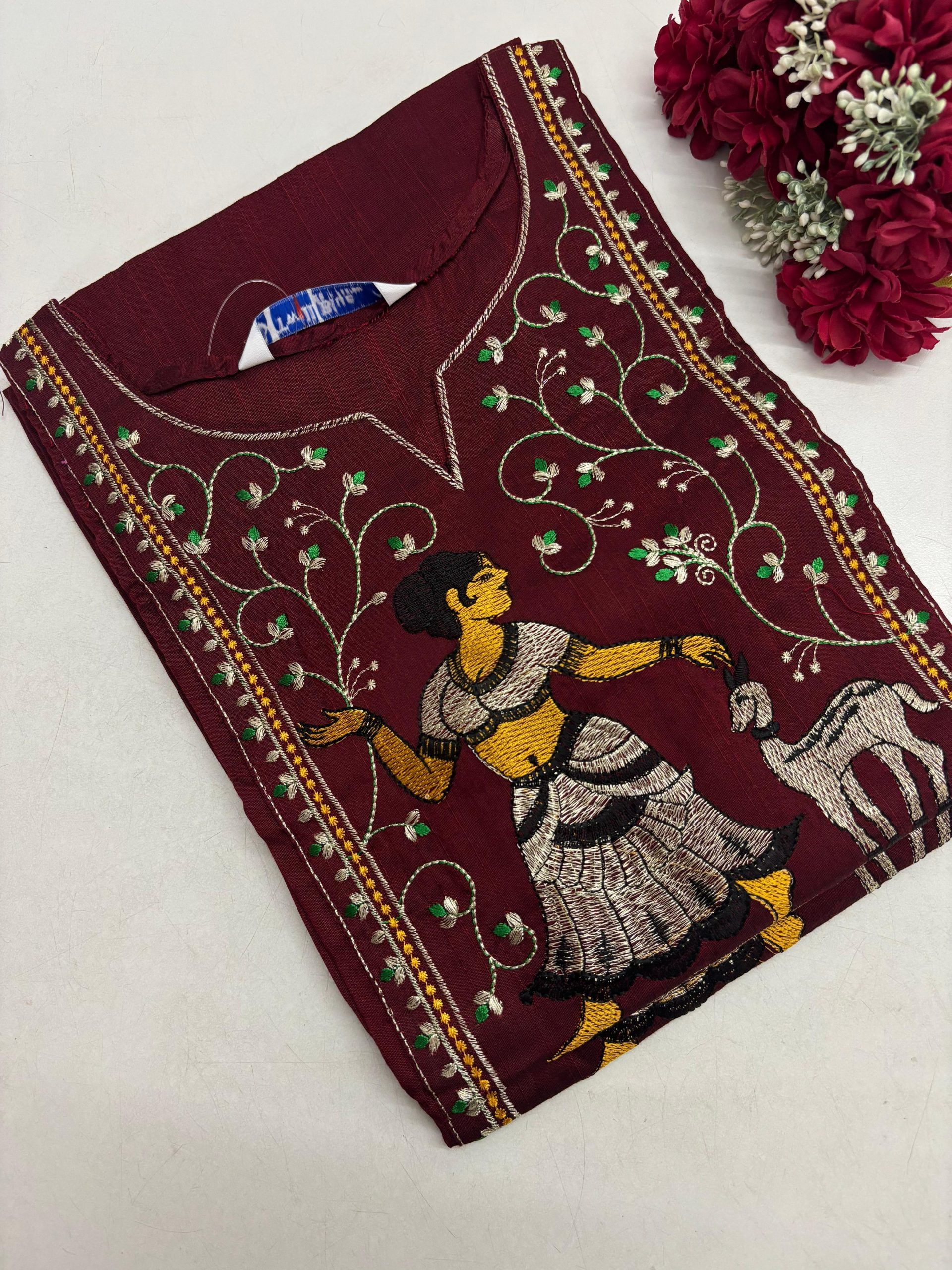 Slub Silk Embroidered Side Open Kurti Sleeve – 3/4th Sleeves Fabric: Slub Silk Top Length: 41 inches