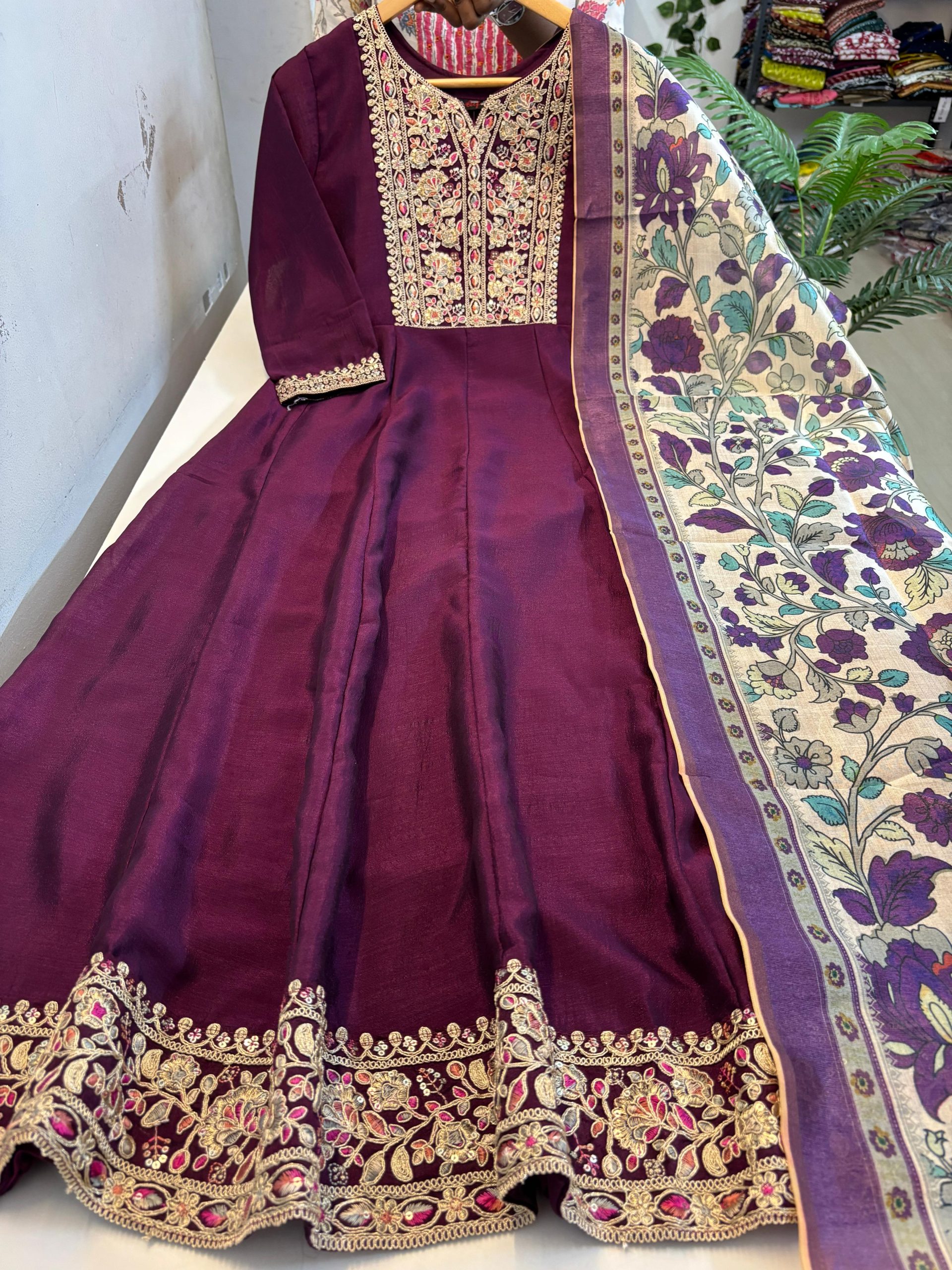 Festive wear Semi Raw Silk Anarkali With Dupatta Set Fabric: Semi Raw Silk Top Length : 47 to 48 inches