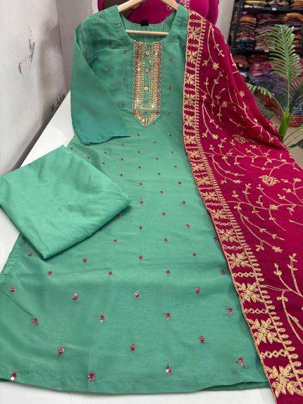 Vatican Silk Kurti With Pant & Dupatta Set