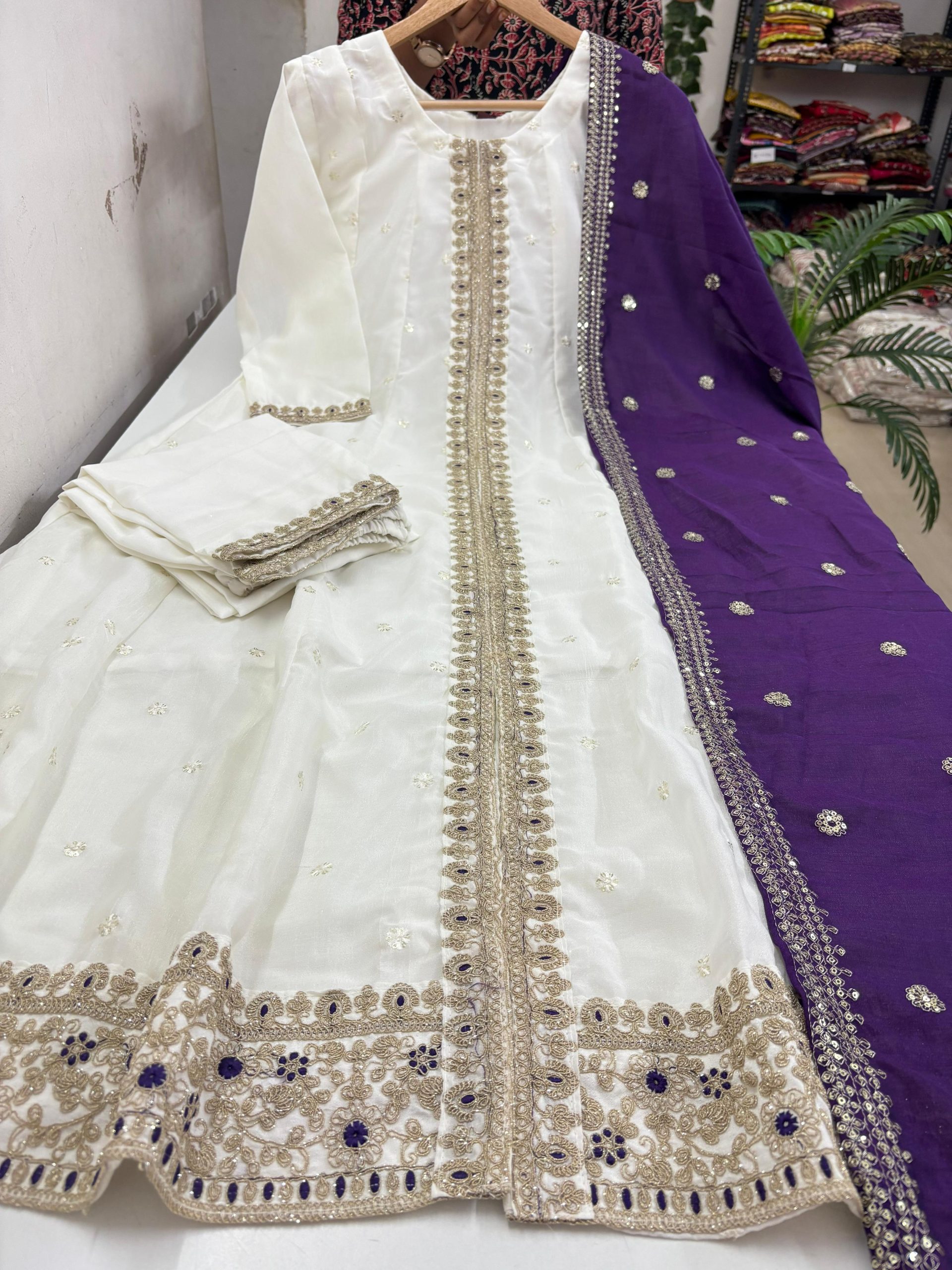 Be the first to review “Vichitra Silk Anarkali With Pant & Dupatta Set” Cancel reply