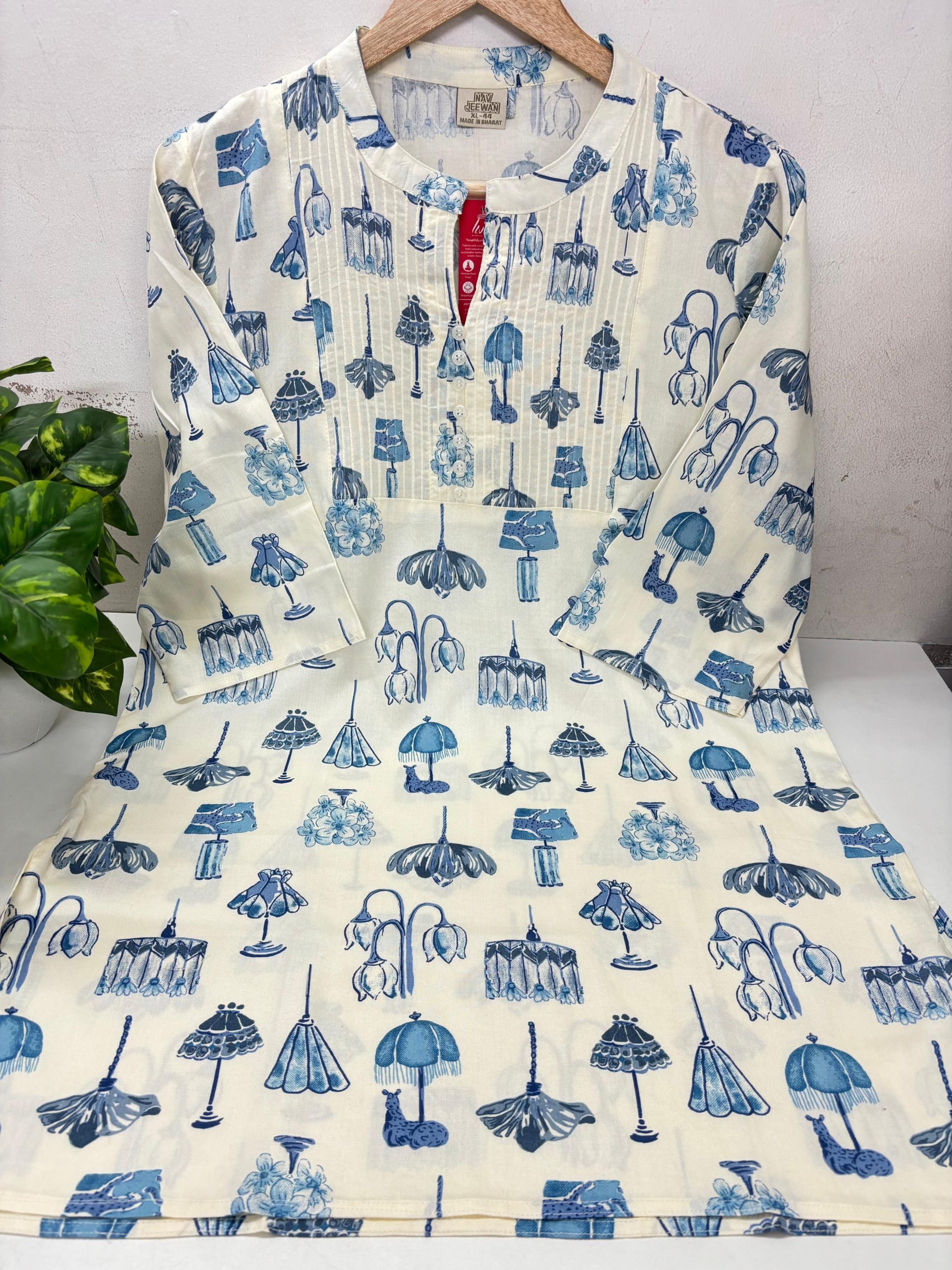 Ethnic Short Kurti for daily and office Wear Fabric: Cotton Rayon Blend Model : Without Side Slit Length: 30 inches