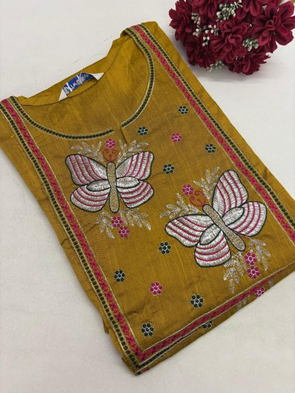 Slub Silk Embroidered Side Open Kurti Sleeve – 3/4th Sleeves Fabric: Slub Silk Top Length: 41 inches