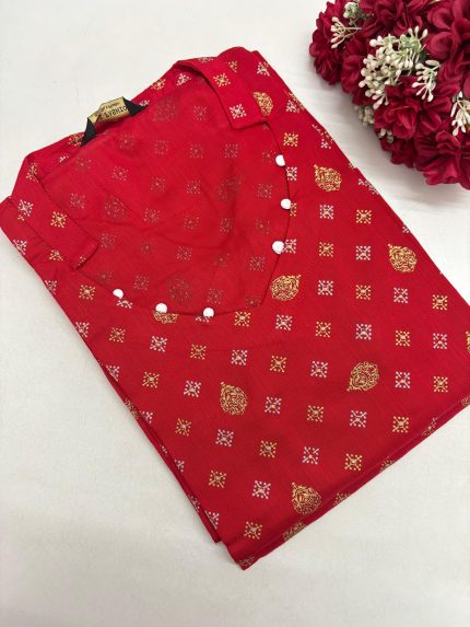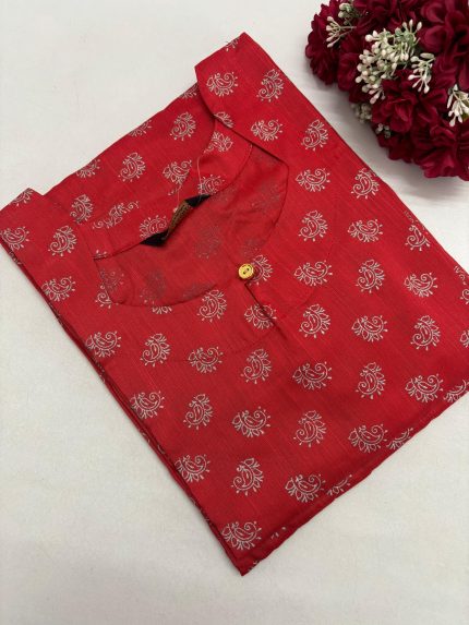 Festive Silk Printed Side Open Kurti With Pocket & beautiful neck design Fabric: Festive Silk Length: 40 to 41 inches